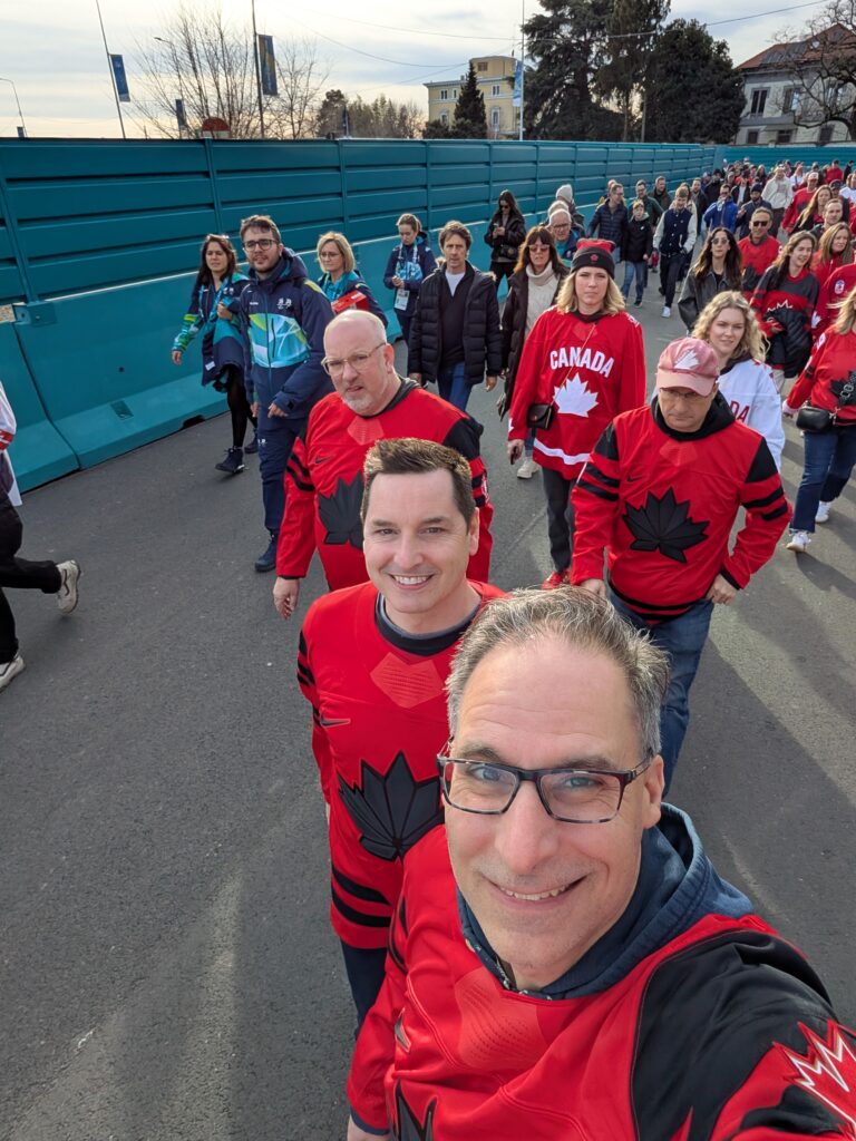 Then it was off to the main event. The highly anticipated (and expected) Gold Medal final with the US Women’s Hockey team. Well you all know what happened there, but our group attributes the win to a lone Canadian woman, not Jenner, Szabados, or even Poulin (although they had a great deal to do with it) but a single fan from BC. At the end of the 2nd period and trailing 2-0, a new fan arrived in our section with unparalleled energy and enthusiasm. She called upon the Canadian crowd to ‘believe Canada believe’ and even turned a local hockey chant “Shaybu” into a hometown version “Shaybu Canada”. This enthusiasm began to spread and before you knew it an entire rink, including the Russians, were chanting our women onto victory!